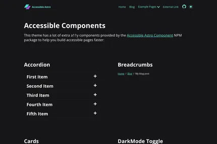 An Accessible Admin Dashboard Theme for Astro with a login page and a dashboard overview. Includes accessibility features such as landmarks, better focus-outline and skip-links navigation.